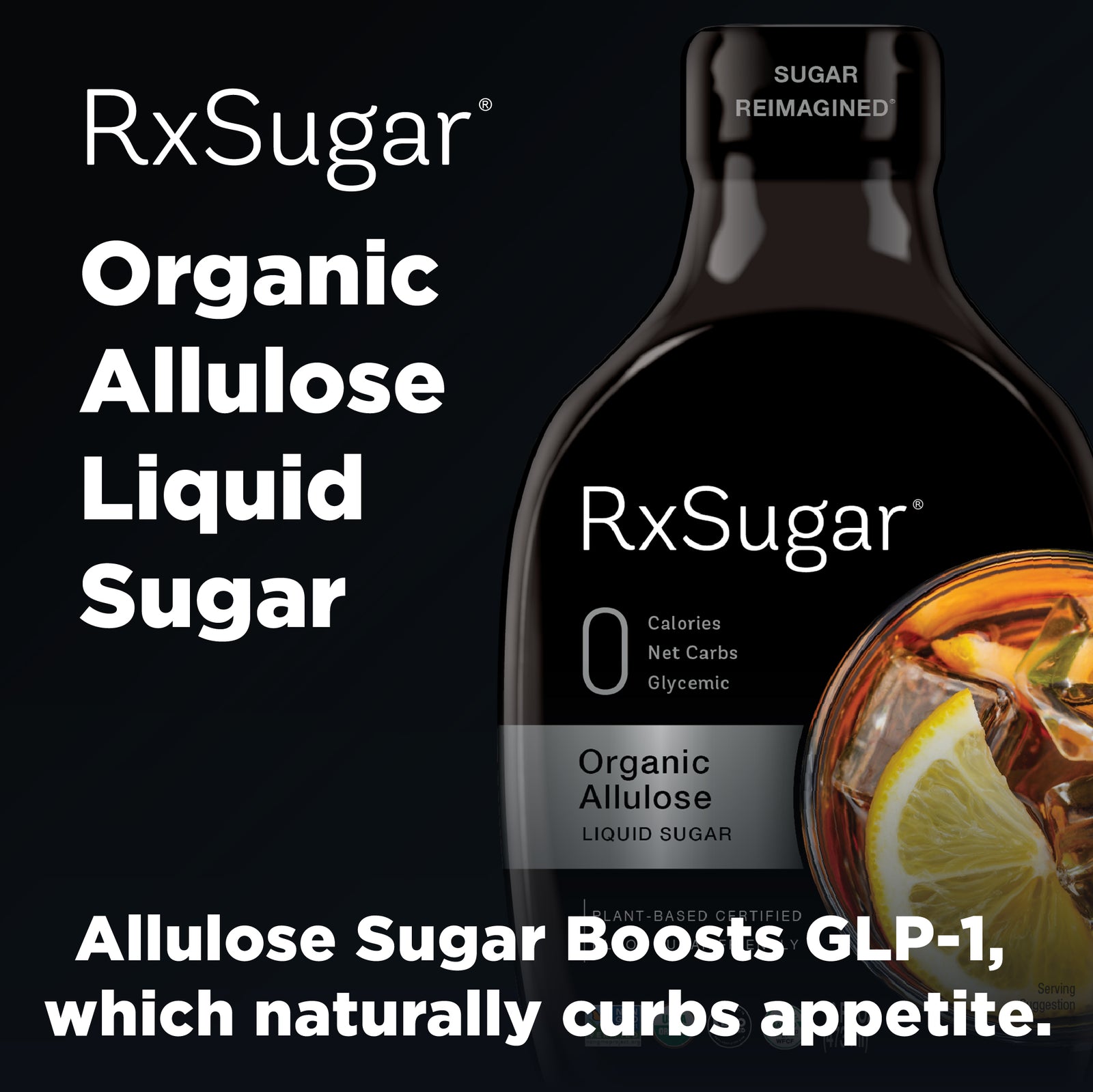 RxSugar® is made from Allulose Sugar, a low calorie plant-based sugar, is different from other sugars in that it is not metabolized by the human body in the same way as table sugar (sucrose). RxSugar® does not affect your blood sugar levels.