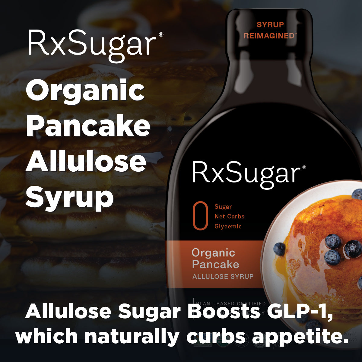 RxSugar® is made from Allulose Sugar, a low calorie plant-based sugar, is different from other sugars in that it is not metabolized by the human body in the same way as table sugar (sucrose). RxSugar® does not affect your blood sugar levels.